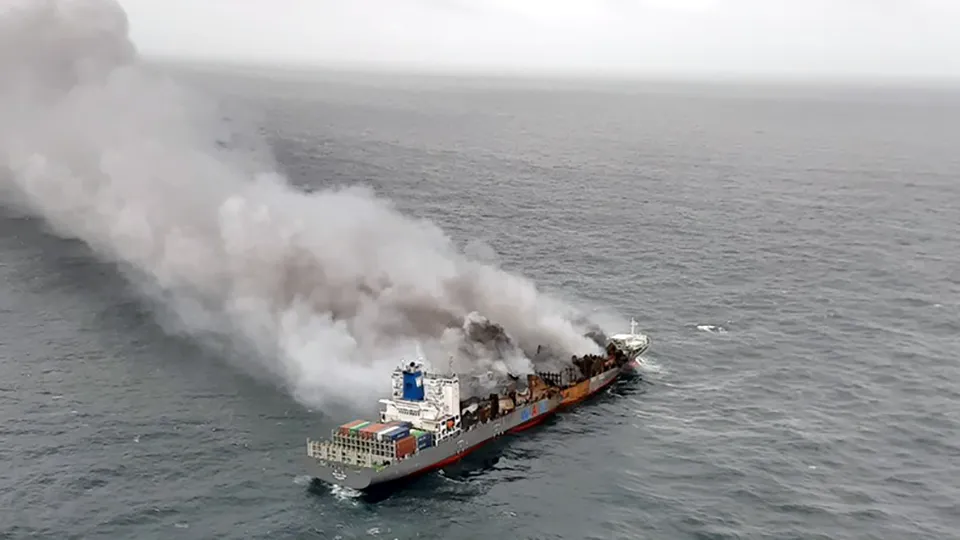 Foreign media reports indicate that approximately 100-117 of the ship's 8,000 containers have been burned or damaged.