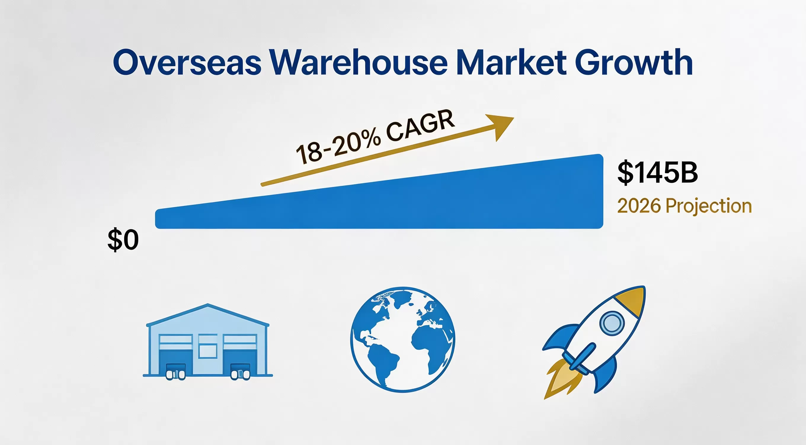 The overseas warehouse market is projected to surpass $145 billion, with a compound annual growth rate of 18%–20%